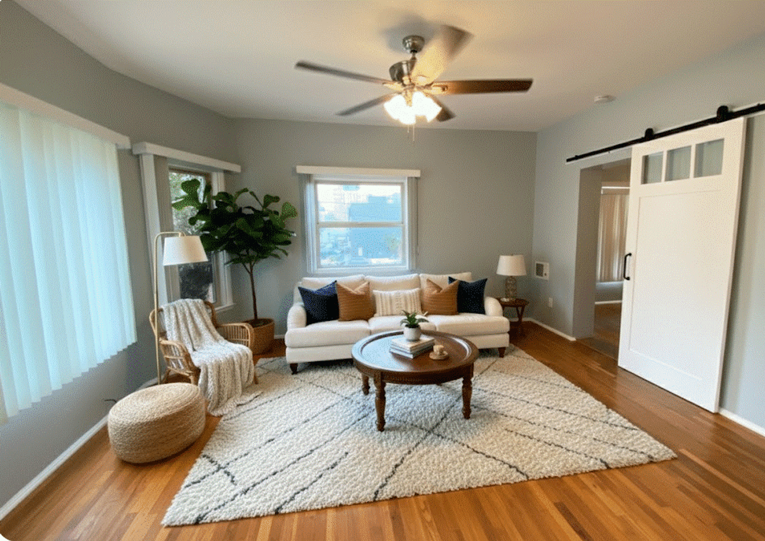 *CEILING FANS* in every room provide added comfort, while the *REAL HARDWOOD FLOORS* add a touch of elegance to the space!