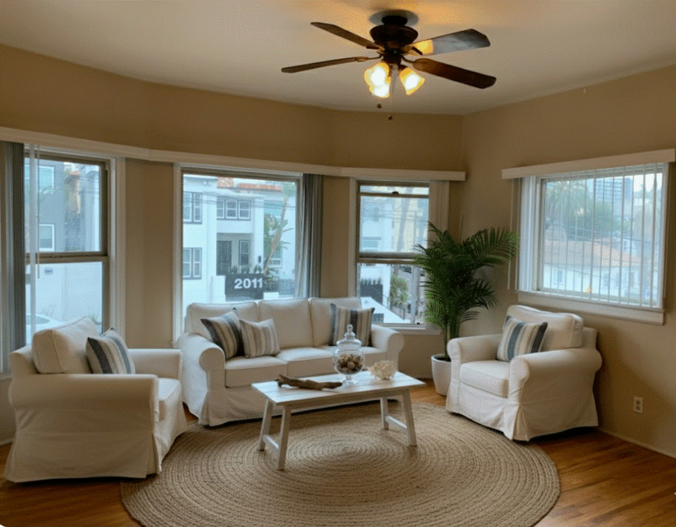 This upstairs unit features double-pane windows that fill the home with natural light while maintaining comfort and quiet. Ceiling fans in each room add both charm and functionality. Take in beautiful views of Downtown San Diego and the city skyline from the comfort of your home.