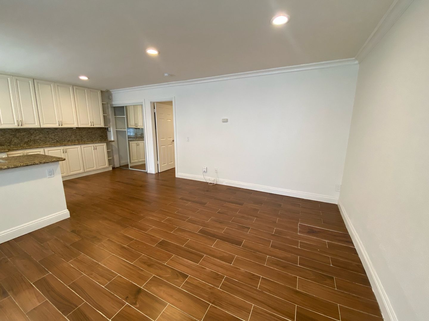 This GROUND level home with an open floor plan features 1 bedroom, 1 bathroom, and beautiful wood-like flooring throughout. The open-plan kitchen boasts high-end stainless-steel appliances, granite countertops, new cabinets, and an in-unit stackable washer and dryer!