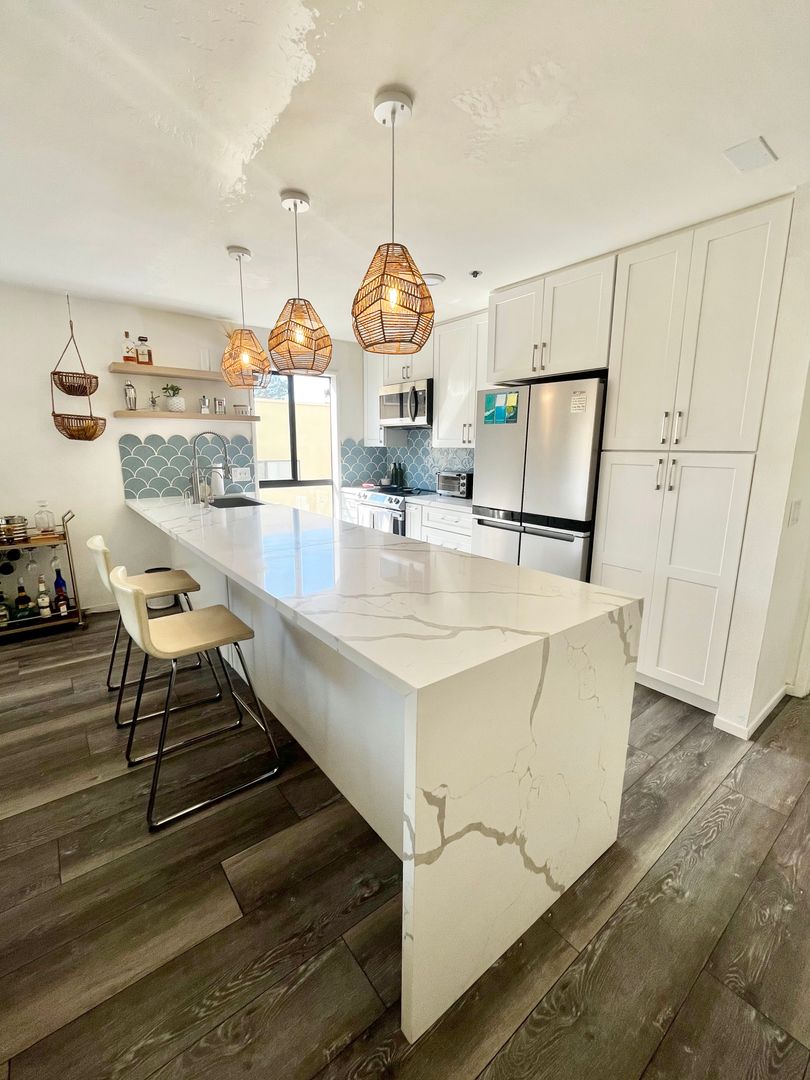 RENOVATED and SPACIOUS 1BD/1BA steps from Mission Bay! Modern Beach vibe with Farmhouse elements condo! LARGE OPEN kitchen with stainless steel appliances, reverse osmosis re-mineralized filtered water and ice, and LVP flooring throughout and carpeted bedroom!