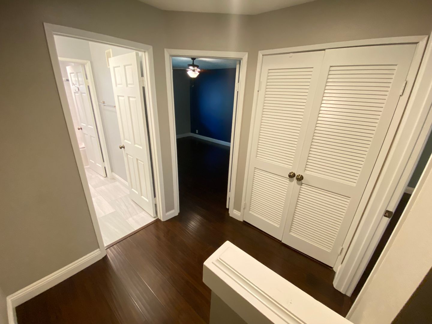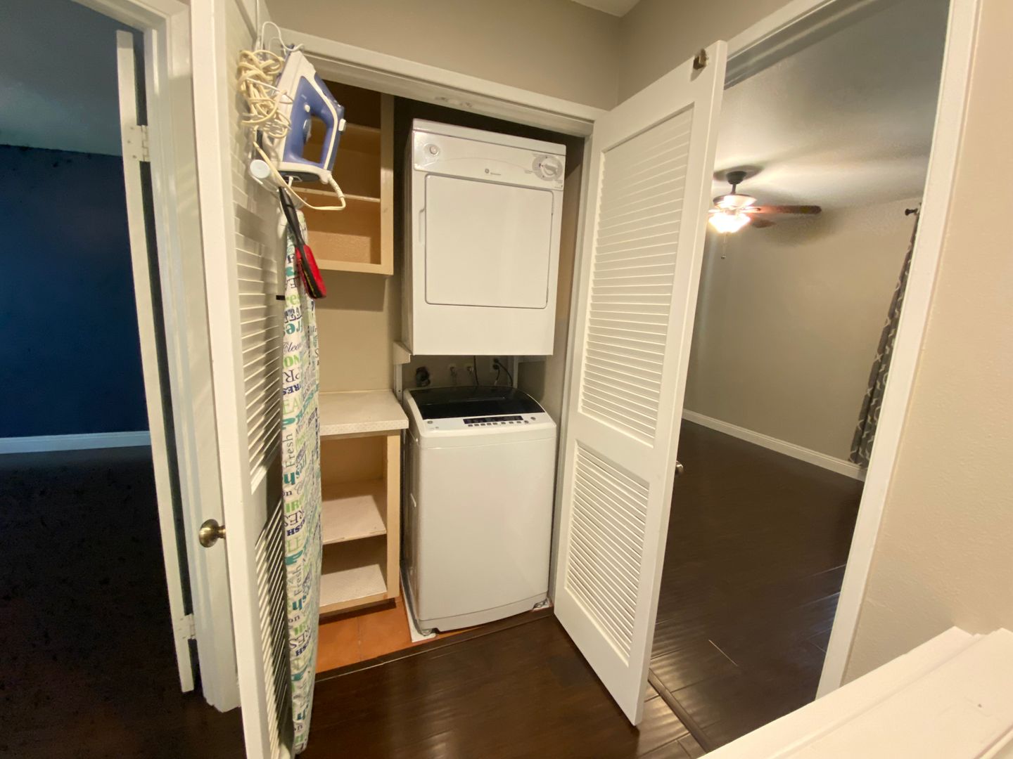 Both of the bedrooms are downstairs and the full bathroom with a shower/tub. Stacked washer and dryer in a closet downstairs as well.