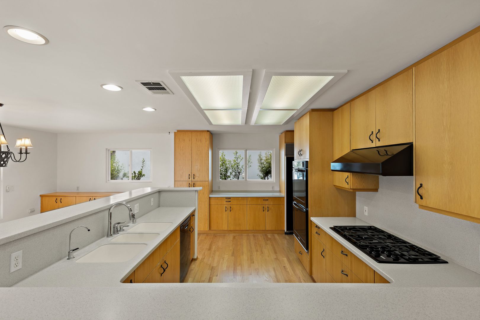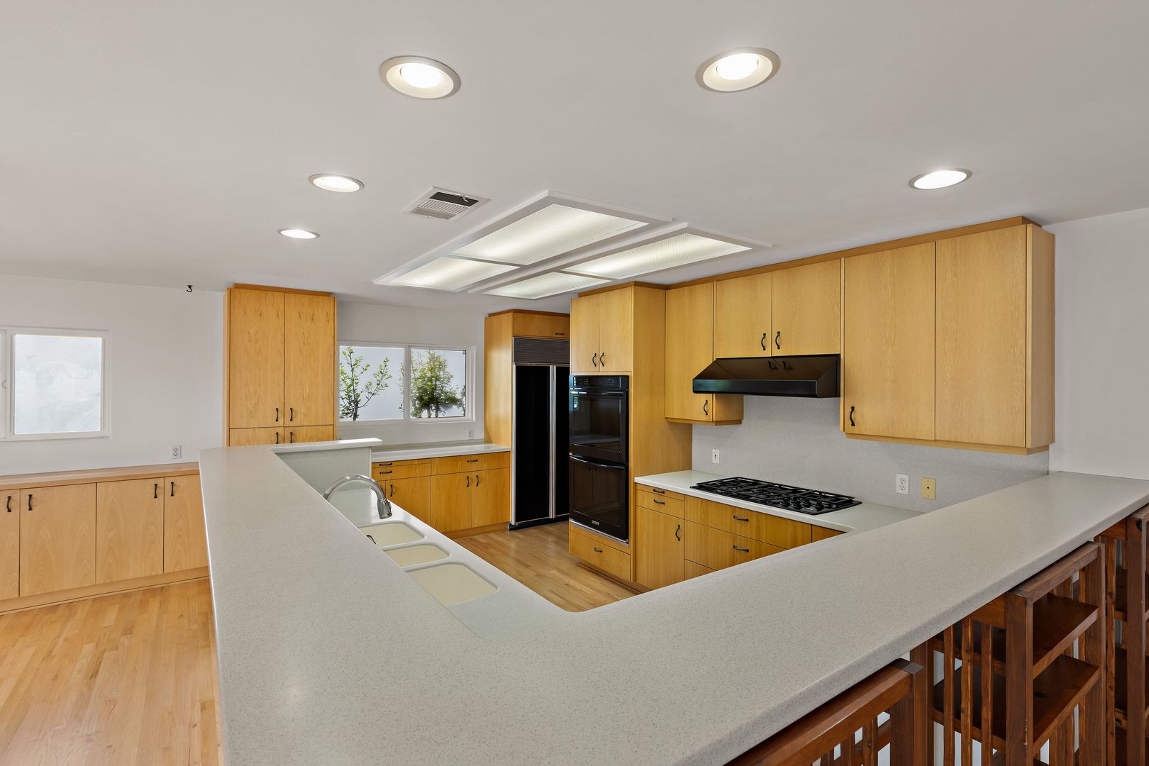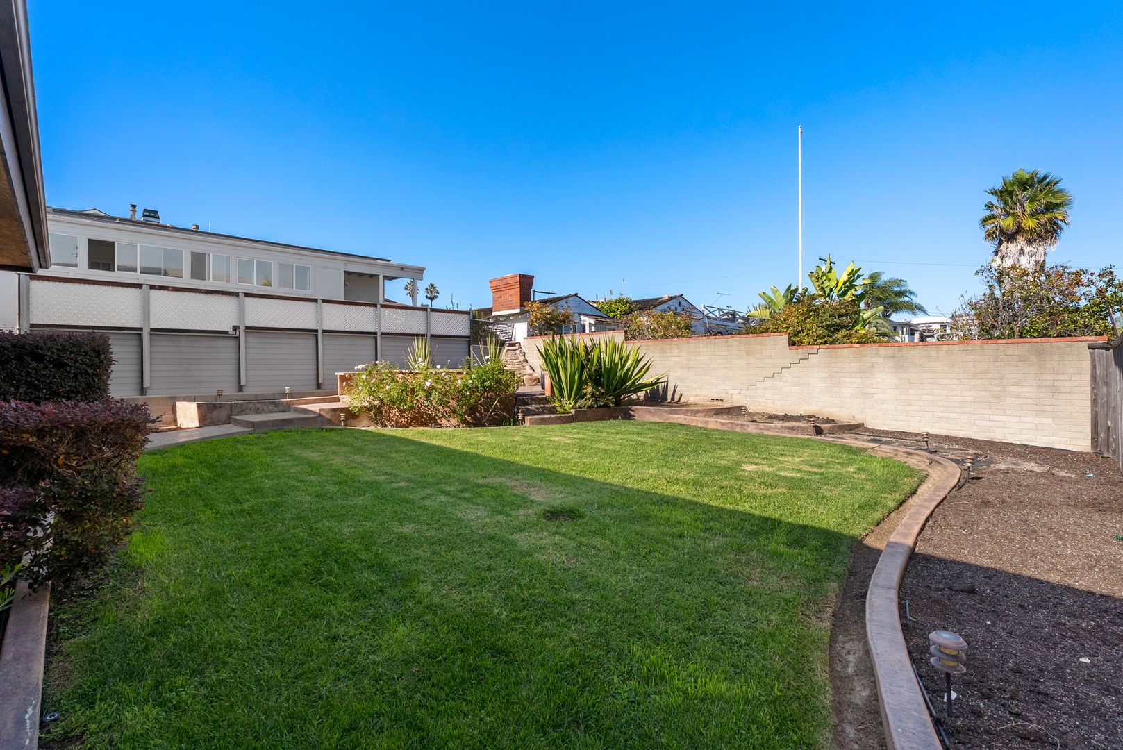 LARGE, FENCED BACKYARD with raised entertainment area and tons of potential for an avid gardener! DOUBLE CAR GARAGE with ample custom built in wall and ceiling storage - great for surf boards! Dumb waiter to conveniently take groceries up to the kitchen. Ample storage includes a separate storage room under the interior stairwell. Large laundry room with full-size washer/dryer and tons of storage cabinets.